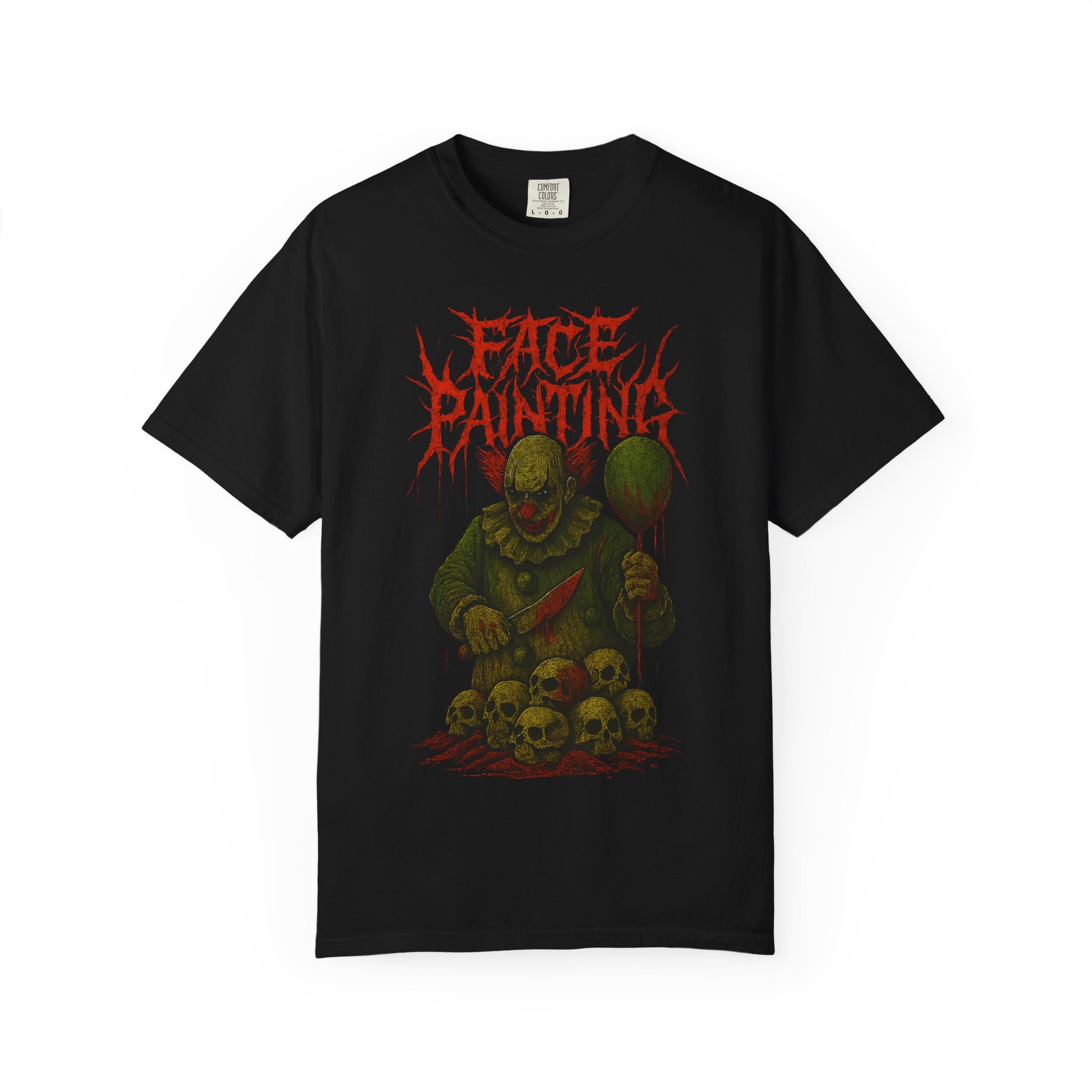 Killer Clown Face Painting Tee, Unisex Heavy Cotton Shirt, Halloween Horrorcore Style, Creepy Circus Aesthetic, Death Metal Gift Idea, Unique Shirt for Slasher Fans, Edgy Alternative Fashion Step into the spotlight of your own blood-soaked freakshow. This tee unleashes a deranged clown straight from your worst nightmares—armed with a blade, grinning through smeared paint, and clutching a balloon like it’s the last thing you’ll ever see. Surrounded by skulls and dripping in gore, it’s a tribute to horrorcore chaos and carnival rot. Crafted for fans of death metal, haunted circus vibes, and slasher aesthetics, this shirt doesn’t whisper—it screams. Whether you're stalking the Halloween streets or headbanging in the pit, it’s your ticket to unsettling stares and cult-level style. Printed on heavy cotton for durability and dread.