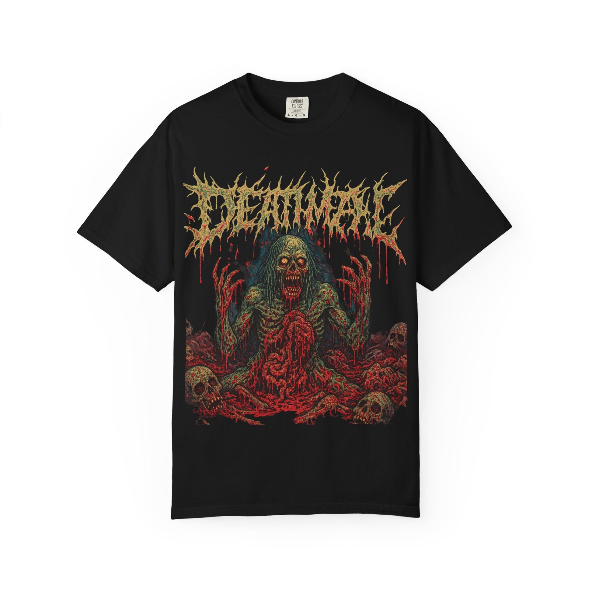 DEATHWAC Gorecore Graphic Tee – Limited Edition Horror Metal Shirt Unleash chaos with the DEATHWAC graphic tee, a brutal fusion of horror art and death metal energy. This shirt features a vivid, hand-drawn design of a decaying monster rising from a pit of blood and corpses—clutching its own entrails and surrounded by shattered skulls, severed limbs, and pure carnage.