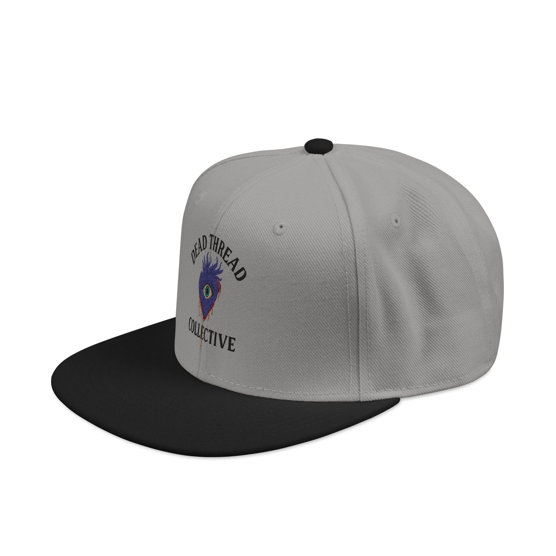 Dead Thread Collective - Brand Merch Unlock your inner chaos with the “Third Eye Burn” snapback from Dead Thread Collective. This gray-and-black cap features a vivid flame-wrapped eye—piercing blue iris, toxic green pupil—set ablaze in a swirl of purple, red, and punk-fueled madness. Above and below, the bold “DEAD THREAD COLLECTIVE” lettering brands this piece as part of the underground elite. Built for horror heads, metal freaks, and streetwear renegades, this hat is more than apparel—it’s a wearable warning. Whether you're stalking the night or storming the pit, this snapback keeps your aesthetic sharp and your message loud.